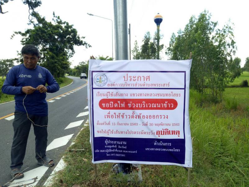 แจ้งขอปิดไฟช่วงบริเวณนาข้าว ถนนสายหนองตุ-นาโพธิ์ ช่วงบ้านโนนยาง-บ้านปลาปึ่ง เพื่อให้ข้าวตั้งท้องออกรวง ตั้งแต่วันที่ 15 กันยายน 2563-วันที่ 30 พฤศจิกายน 2563 ขอให้ผู้ใช้เส้นทางโปรดระมัดระวังอุบัติเหตุ