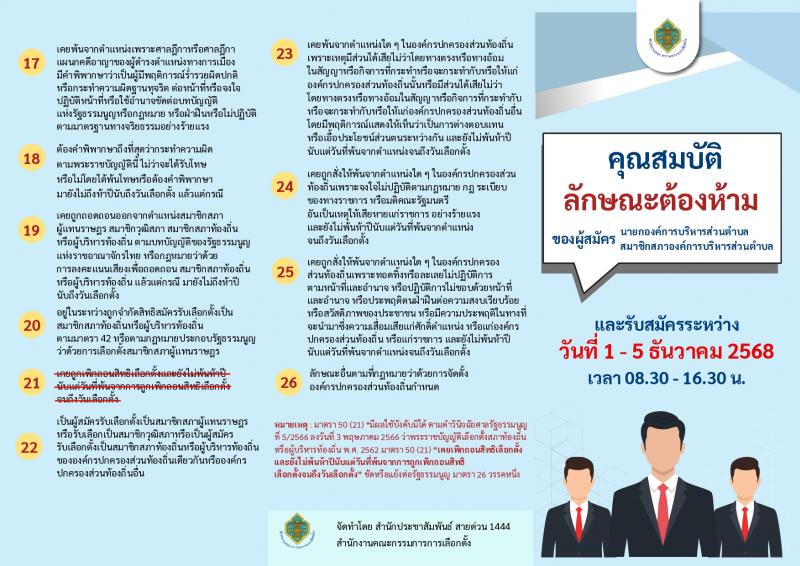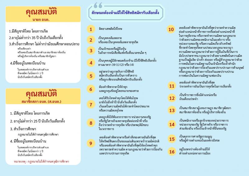ประชาสัมพันธ์ การตรวจสอบคุณสมบัติและลักษณะต้องห้ามให้ผู้ที่สนใจสมัครรับเลือกตั้งเป็นสมาชิกสภา อบต. หรือนายก อบต.