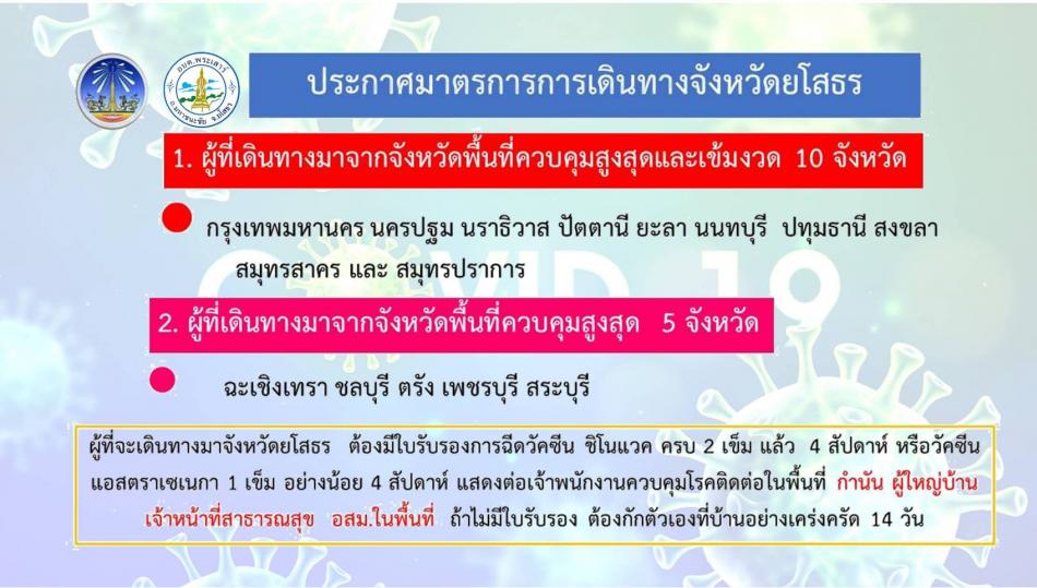 มาตรการเดินทางเข้าในพื้นที่ ช่วงโควิด-19 [1 กรกฎาคม 2564]