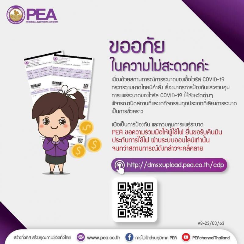 การคืนเงินประกันการใช้ไฟฟ้า สามารถลงทะเบียนทาง website ได้ตั้งแต่วันที่ 25 มีนาคม 2563 เป็นต้นไป (ไม่มีกำหนดเวลาสิ้นสุด)